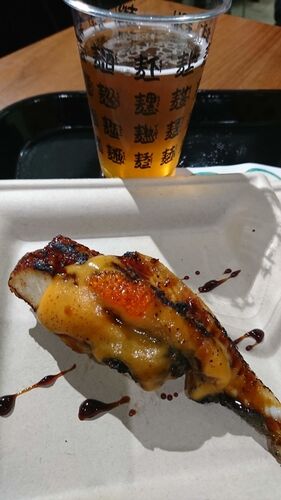 webでイベントを見かけたので、銀座のソニーパークまで行ってみた。 地下鉄を出て、地下街から直結。 看板発見! 早速入口へ、混雑してます。 先にチケットを購入して、カウンターで寿司、ビールを入手する段取り。 お気に入りの496と、うなぎチーズ的な…