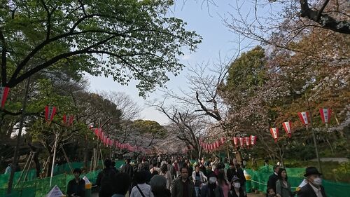 代休をもらって、平日に上野公園に行ってみた。花見シーズンということもあり、すごい混雑。 人混みを掻き分けつつ(大袈裟)公園奥へ進みます。道路両脇の提灯というか行灯的なのが雰囲気ありますね。 晴天で桜も映える。観光客も多い。さすが上野。 椅子を…
